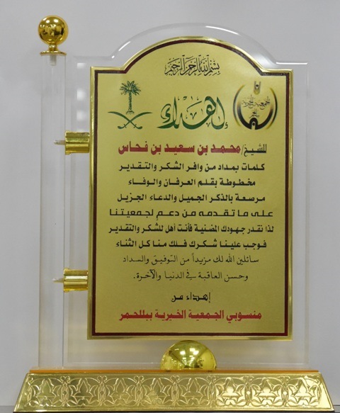 من جهته شكر ” بن فحاس ” ضيفه على هذه الزيارة وهذا التكريم داعياً الله له ولمنسوبي خيرية بللحمر بالتوفيق والنجاح وأن تستمر جمعيتهم المباركة في تقديم خدماتها الاجتماعية وأداء رسالتها الإنسانية النبيلة في هذه المنطقة.