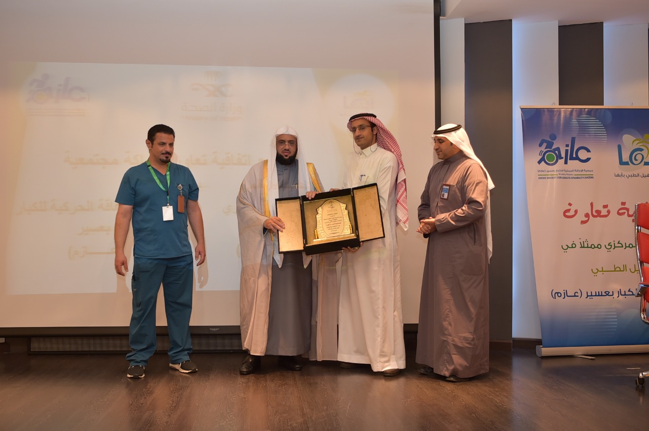 كرم مساعد المدير العام للشؤون الصحية بمنطقة عسير الدكتور / عبدالله قداح صباح هذا اليوم الإثنين 25 ربيع الأول 1440هـ الموافق 3 ديسمبر 2018م فضيلة أمين عام جمعية البر بأبها الشيخ محمد بن سعيد بن فحاس ، وبحضور مدير عام فرع وزارة العمل والتنمية الاجتماعية بمنطقة عسير الأستاذ / حسين بن حمد المري ؛ وذلك نظير مساندة جمعية البر بأبها للعمل الاجتماعي والإنساني بالمنطقة وخصوصاً هذه الفئة الغالية من ذوي الإعاقة خلال الحفل الذي أقامه مركز التأهيل الطبي بأبها بقاعة الأمير فيصل بن خالد بن عبدالعزيز في مستشفى عسير المركزي ضمن فعاليات اليوم العالمي للإعاقة .
