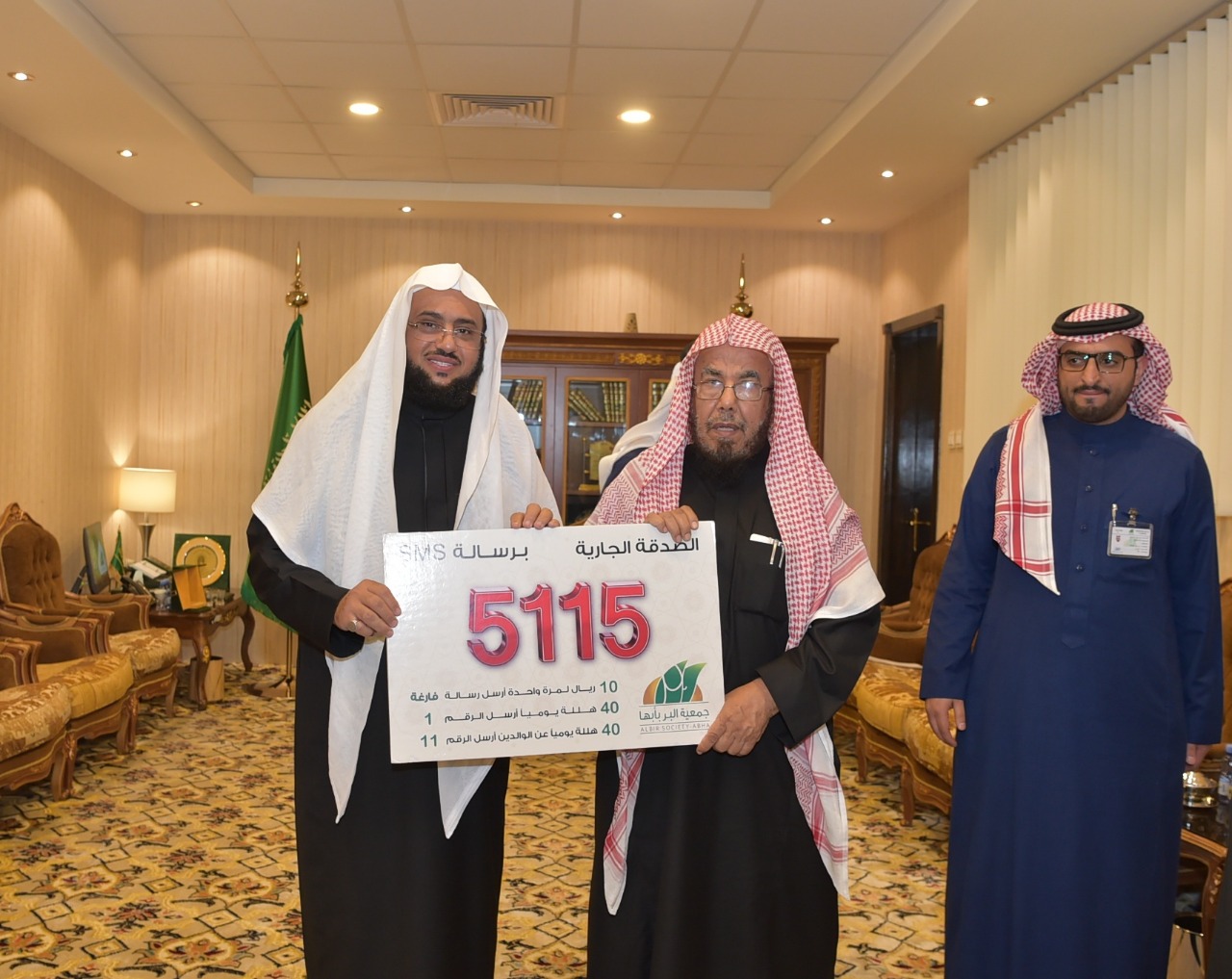 بعد ذلك ألقى معاليه كلمة ضافية لمنسوبي الجمعية عن فضل هذا العمل المبارك معرباً معاليه عن إعجابه بما رآه من تنظيم في أداء العمل وما تميزت به جمعية البر بابها من برامج ومشاريع نوعية في مساعدة الفقراء والمحتاجين من نواحٍ عدة ، وأشاد معاليه بمساندة أهل الخير في هذه التجارة الرابحة مع الله ، داعياً الموسرين للمساهمة في دعم هذه الجمعية وان يبارك الله للمنفقين ما أنفقوا وان يوفق القائمين والعاملين على هذه الجمعية لكل خير .
